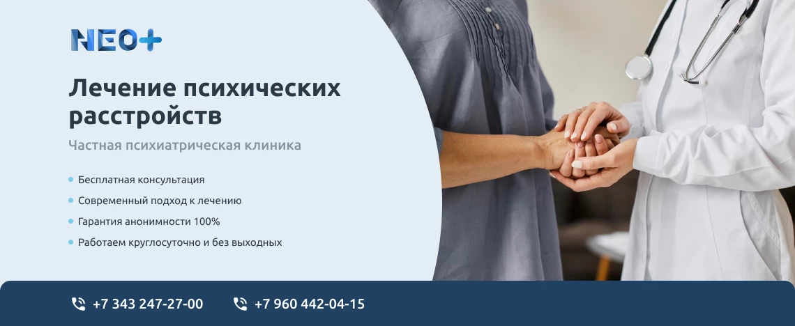 Чтобы ускорить процесс нормализации состояния, обратитесь в клинику «НеоПлюс» в Струнино. У нас работают профессиональные врачи, которые знакомы с особенностями лечения заболевания. Они изучат состояние пациента, проведут диагностику и разработают грамотную схему лечения. Чтобы обратиться в отделение психиатрии и получить квалифицированную помощь, позвоните по телефону ☎️ 8 (960) 442-04-15. Дополнительно можно оставить заявку через форму обратной связи. Наши сотрудники ответят на звонок, после чего подскажут, как воспользоваться услугой.